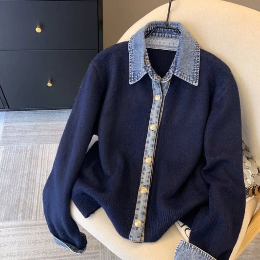 En PromotionCardigan Col Denim Effet 2 Pièces – Chic & Moderne