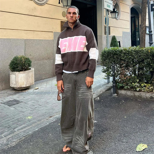 Cardigan Court Zippé Y2K – Lettres & Esprit Rétro Tendance