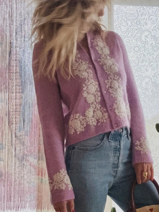 Cardigan Brodé Fleuri – Style Vintage & Finitions Soignées