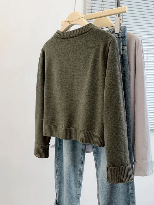 Cardigan Col V Boutonné – Maille Acrylique & Style Coréen Intemporel