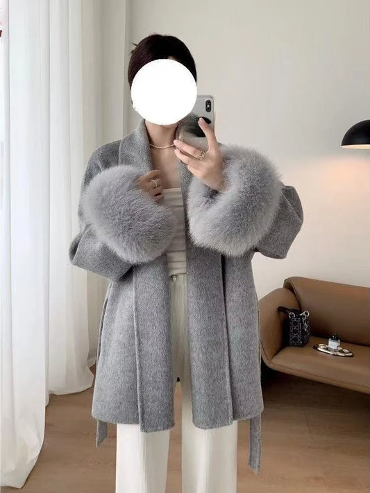 Manteau Cape en Laine Style Hepburn – Touche Fourrure & Élégance Vintage
